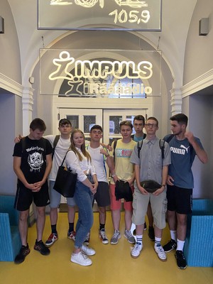 V pondělí 20.6. naše malá skupinka osmi odvážlivců získala možnost navštívit zákulisí Rádia Impuls. Po obědě jsme se i přes veškerá vlaková zpoždění dokázali do hodiny a půl dostat do Prahy na hlavní nádraží. Následovala dobrodružná krátká cesta metrem.