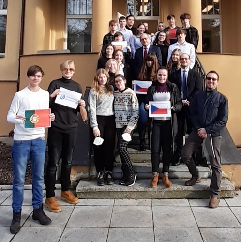 After a friendly and fun lunchtime in the center of Prague the students proceeded to the facilities of the Instituto Camões, the institute responsible for promoting Portuguese culture and language worldwide. In this lecture the students were presented with the international importance of the Portuguese language, currently number 6 in the world, and how an organization of this kind works. At the end of the visit, the director of the institute, Gilda Machado, already deeply committed to the teaching of Portuguese in Rokycany, distributed prizes among the most knowledgeable students.