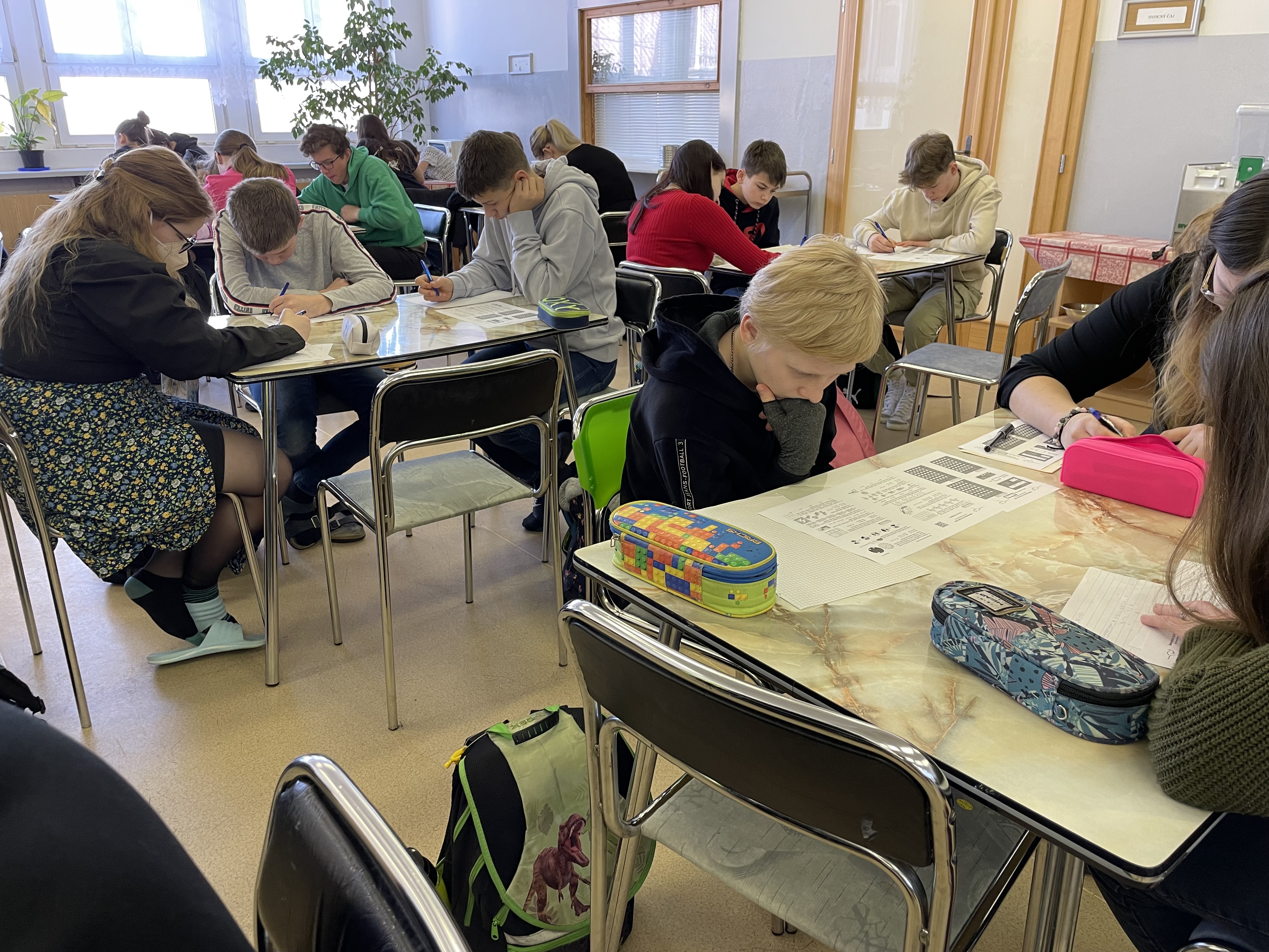 V pátek 17. března 2023 zaplnili školní jídelnu na gymnáziu a jednu třídu na SOŠ studenti odhodlaní provětrat své mozkové závity při řešení zapeklitých úloh mezinárodní soutěže Matematický klokan.