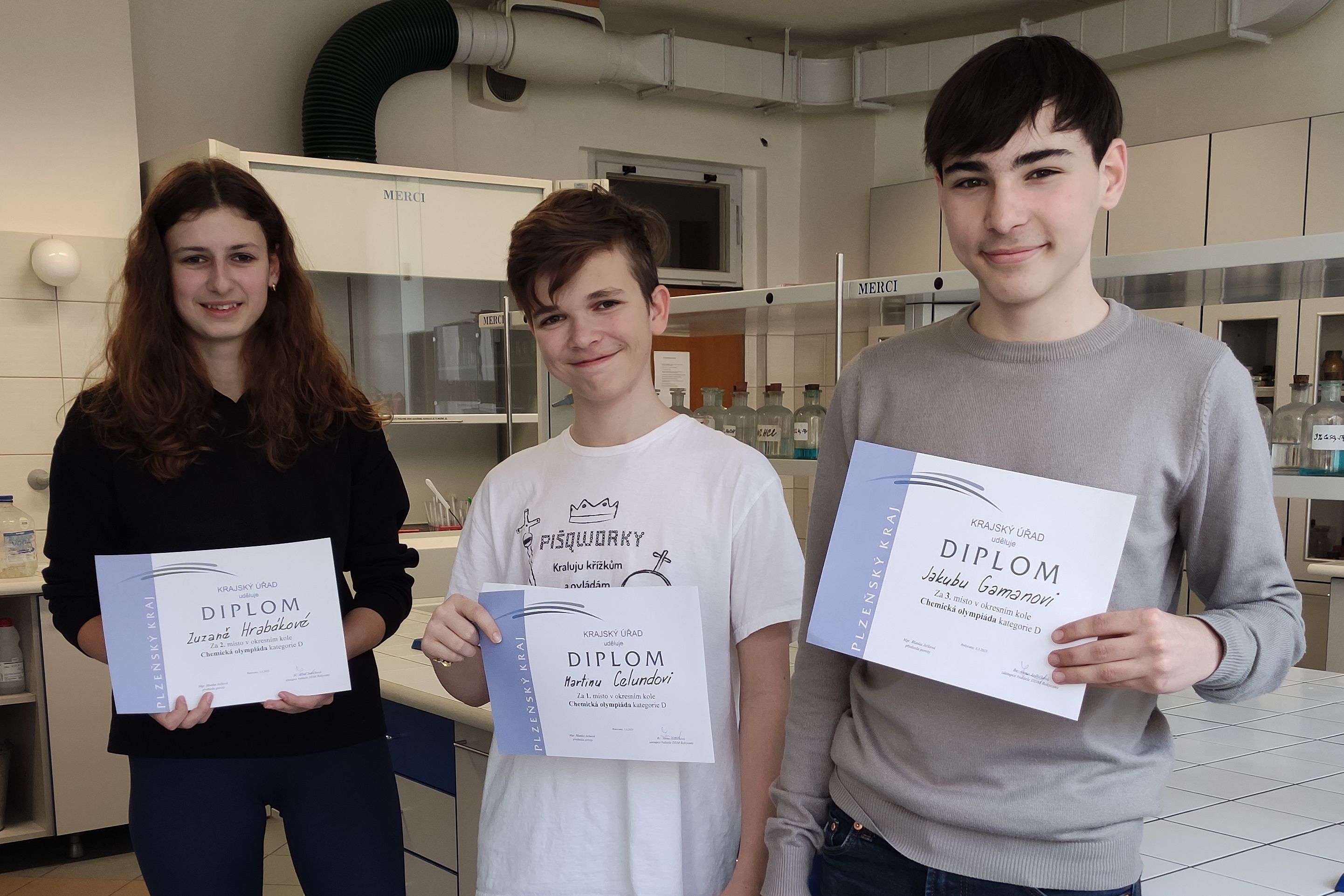 V pátek 3. března 2023 proběhlo na gymnáziu okresní kolo chemické olympiády kategorie D. Olympiády se zúčastnilo 13 soutěžících, ze základních škol 10 žáků, z nižšího gymnázia 3 žáci. Soutěž proběhla ve dvou částech: teoretické a praktické.