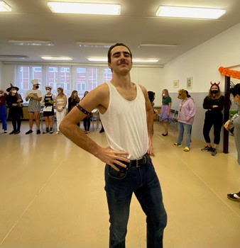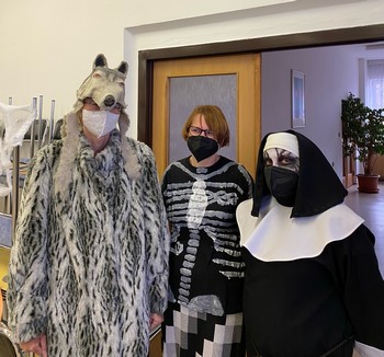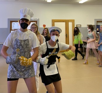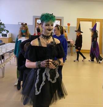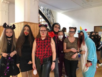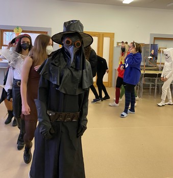 Vítěznou cenu z řad učitelů si odnesl náš pan ředitel Pavel Vlach, který dorazil do jídelny s malým přenosným teráriem, ve kterém bylo místo chameleona umístěno pár propisek.