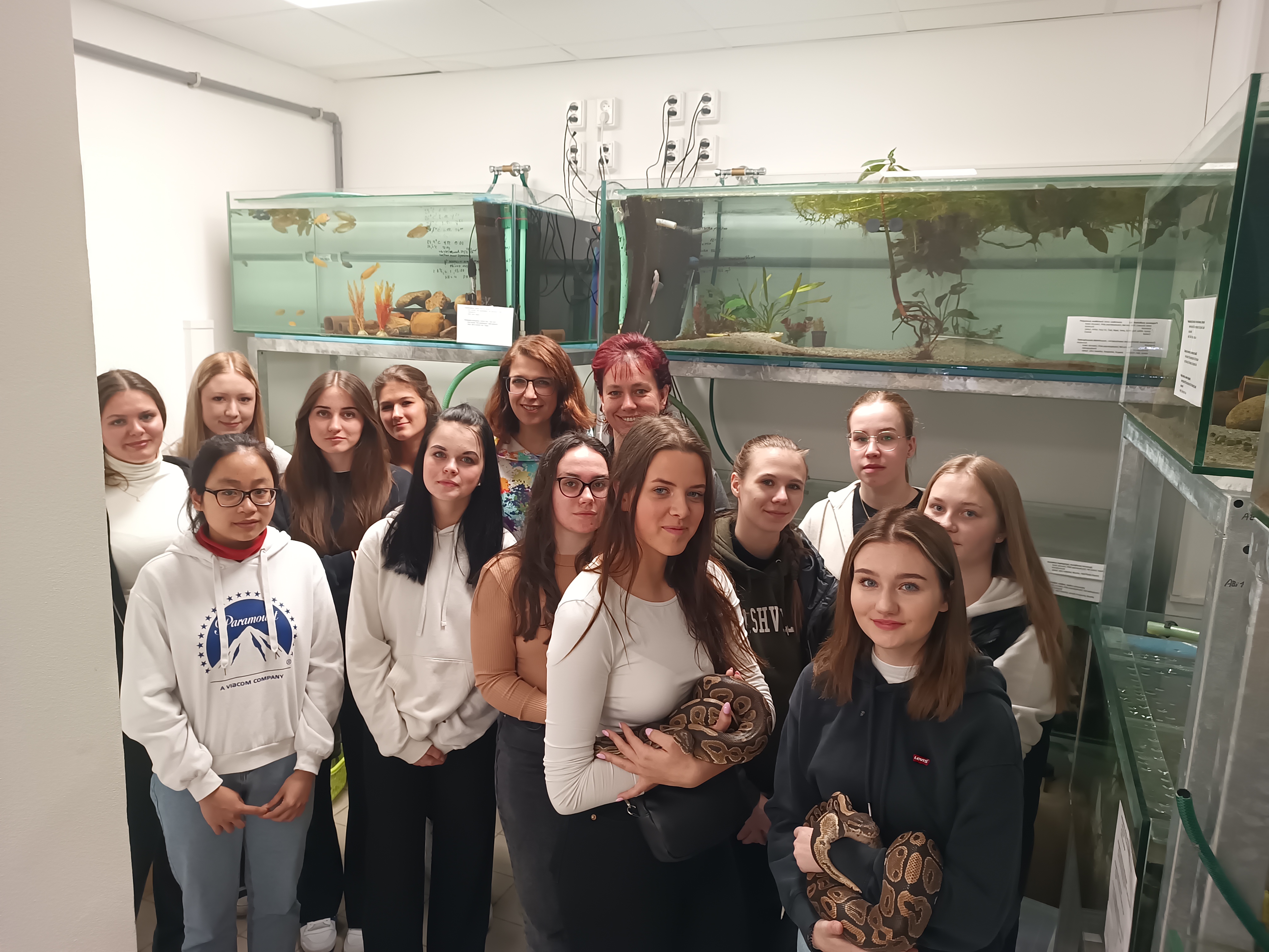 Dne 12. dubna proběhla exkurze žáků Střední zdravotnické školy Plzeň v biologických sbírkách a zázemí chovatelského kroužku gymnázia. Žáci SZŠ si detailně prohlédli například pštrosí vejce a historické vycpaniny jako například ptakopyska, sokola nebo kaloně. V zázemí chovatelského kroužku pak obdivovali želvy, hady, ještěry, strašilky, achatiny, zlatohlávky i několik druhů ryb (jesetera, bichira další) a řadu z nich si i pohladili nebo pochovali.