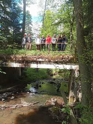 První den jsme se naučili pracovat s pH čidlem a konduktometrem a určovat organoleptické vlastnosti vody (usazeniny, zápach, chuť aj.). Na odběrech s názvy “Pod mostem”, Třítrubecký potok a Tři Trubky jsme vodu i ochutnávali díky velmi přesvědčivým výsledkům analýzy - např. nízké konduktivitě*. Jednalo se také o nejnáročnější den, jelikož jsme ušli 23 km v CHKO Brdy.