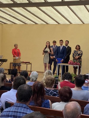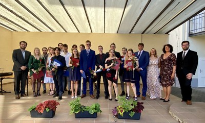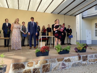 V pondělí 6. června jsme se v Klubu komorní kultury oficiálně rozloučili se všemi absolventy naší G+SOŠ . Obory SOŠ (Ekonomické lyceum a Informační technologie), oktáva a 4.B. Všechna přání už byla z úst pana ředitele, pana místostarosty a třídních učitelů řečena. My ještě doplníme:"Ať jste prostě šťastní 😊"