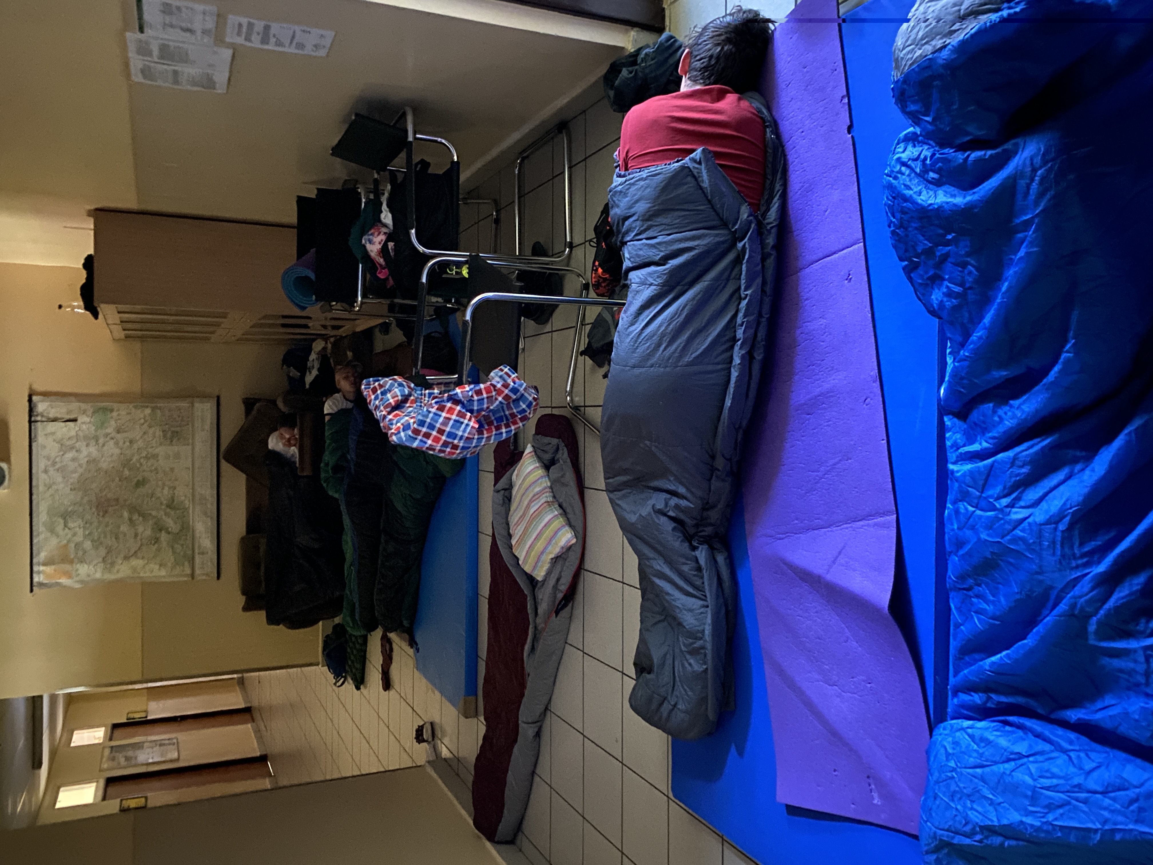 Noc naši zpěváci strávili ve škole, karimatky se spícími ležely nejen v učebně HV a 2.B, ale i na chodbách. Ráno jsme si dali vydatnou snídaní, kterou nám připravily paní kuchařky, a začali opět trénovat. Během celého našeho soustředění nás přišla navštívit naše bývalá studentka Kristýna Krčmová (učitelka muzikálového zpěvu) a Eliška Mužová (studentka pedagogické školy) a zpestřily nám tímto hodiny vokálních činností.