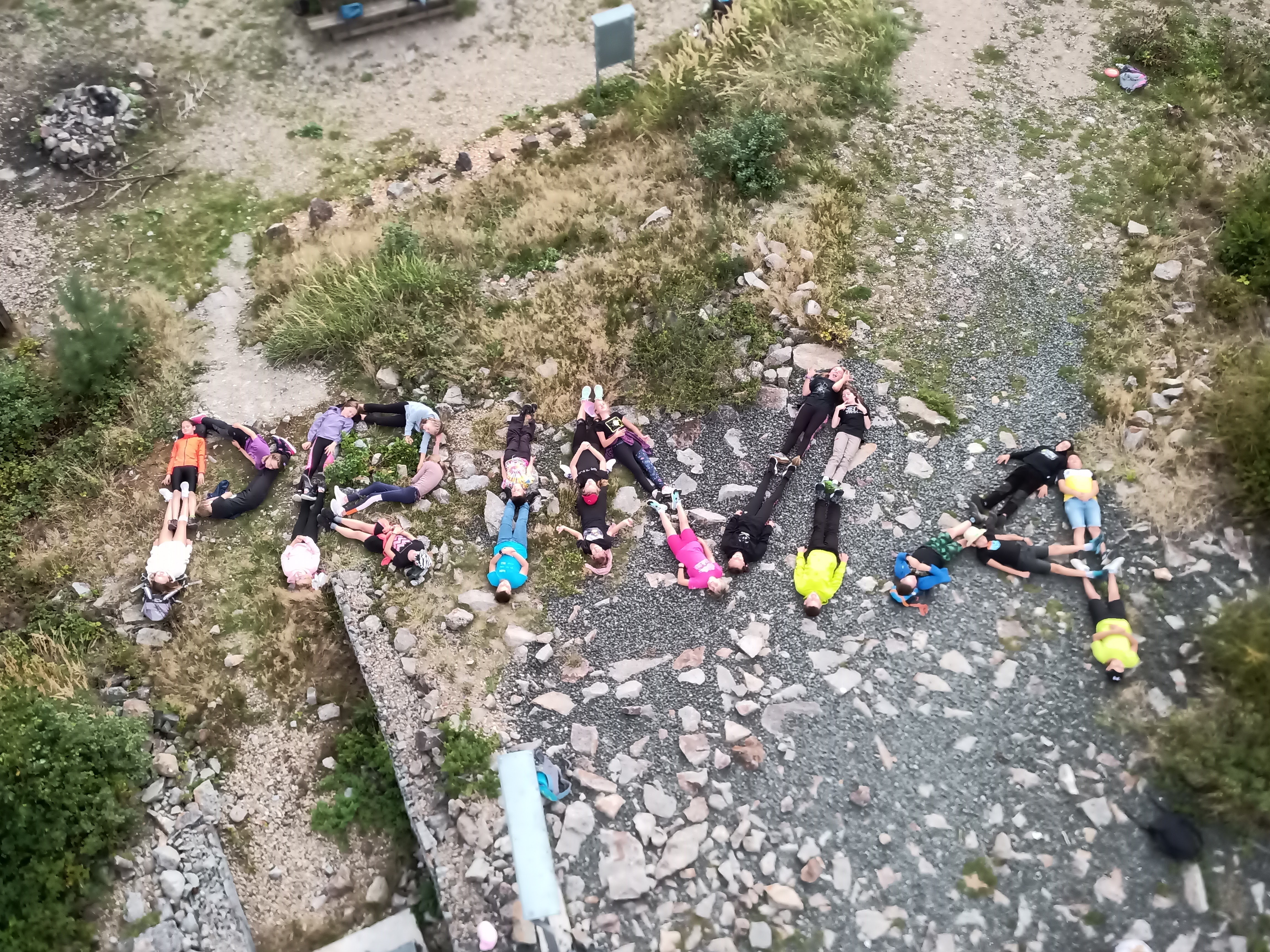 Hráli jsme také hru o předávání kamene a postavili lidský nápis PRIMA. Pomalu jsme začali scházet zase dolů opět po prudkém svahu. Následoval ještě táborák, kde jsme zpívali a hráli na hudební nástroje.