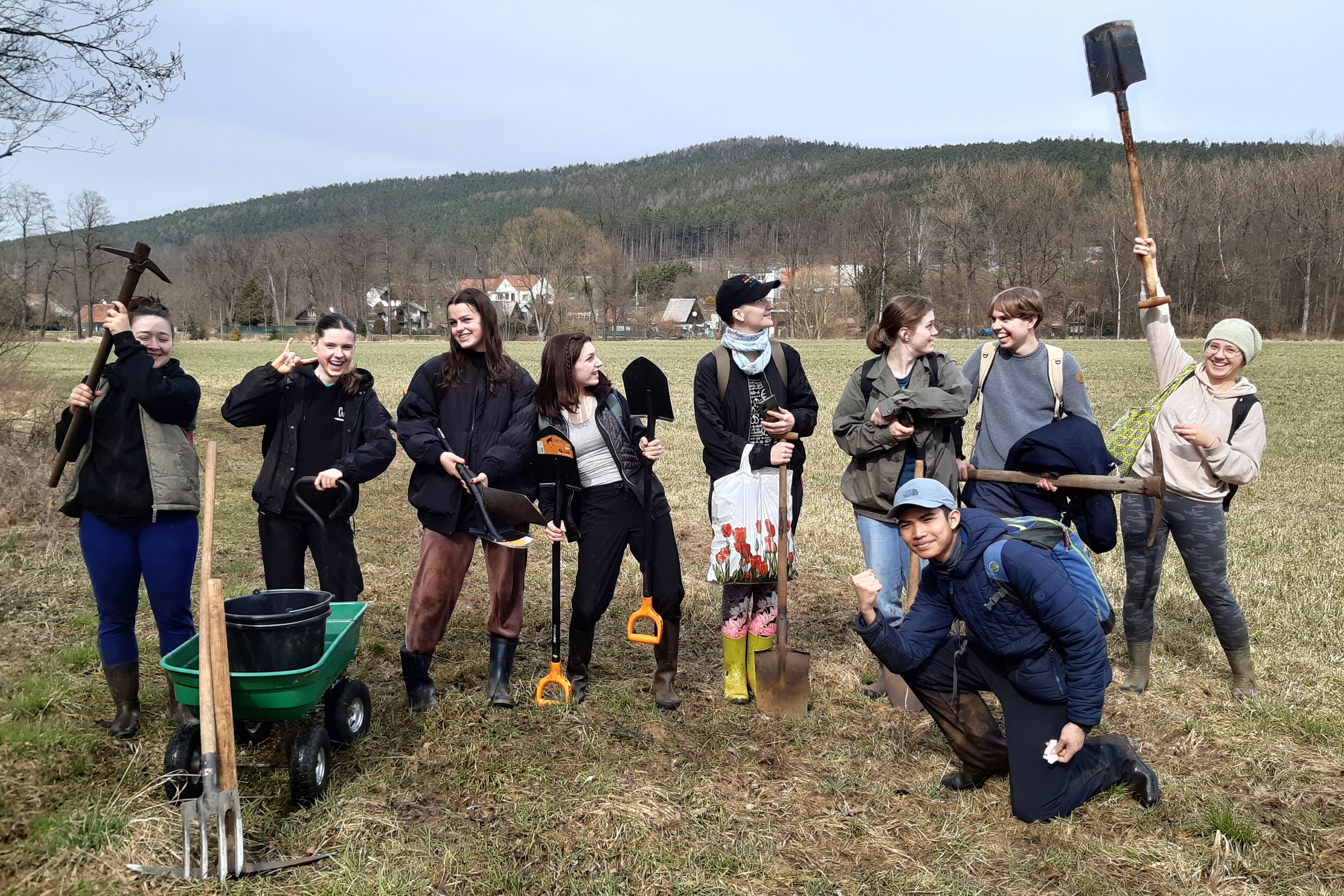 V sobotu 18.3. věnovala skupina dvanácti studentů G+SOŠ již počtvrté svůj volný čas dobrovolnické práci na mokřadní louce Hrádecká bahna.