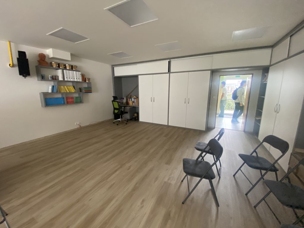 V místnosti byly položeny nové podlahy a instalován posuvný stupínek, který umožňuje snadné přizpůsobení prostoru různým formám výuky. Akustické vlastnosti učebny zlepšují nové izolované podhledy, a o kvalitní zvuk se stará moderní ozvučení.
